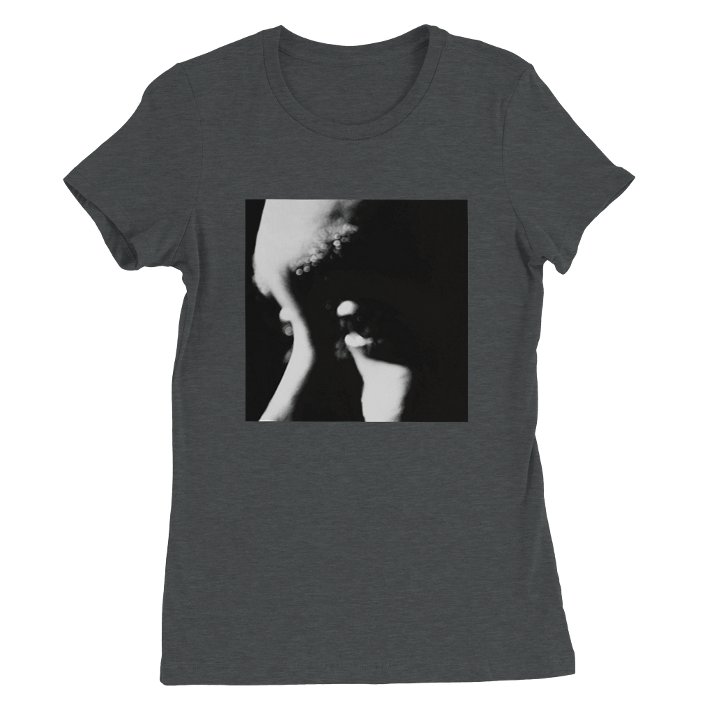 Constructed from 100% Airlume combed and ring-spun cotton, with heather/blend colors incorporating polyester. Features include side seams for a slim fit, shoulder taping, fitted sleeves, and a longer body length.