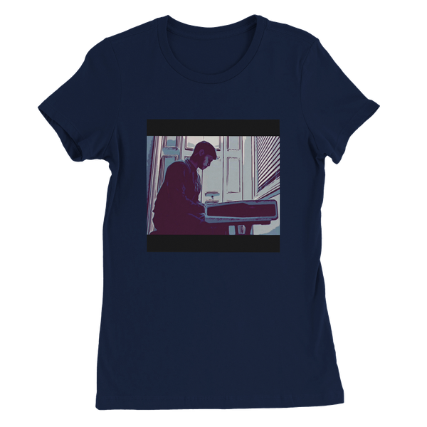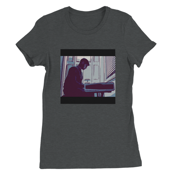 Constructed from 100% Airlume combed and ring-spun cotton, with heather/blend colors incorporating polyester. Features include side seams for a slim fit, shoulder taping, fitted sleeves, and a longer body length.