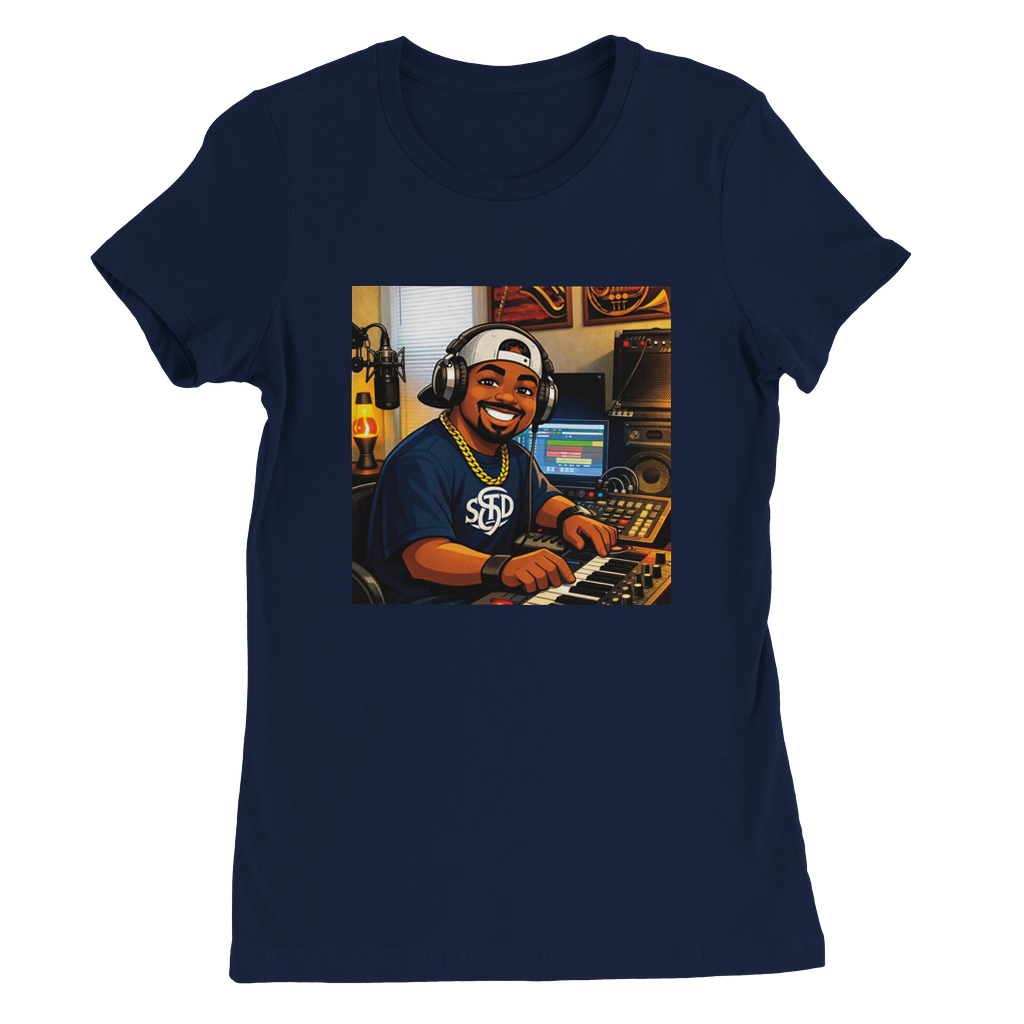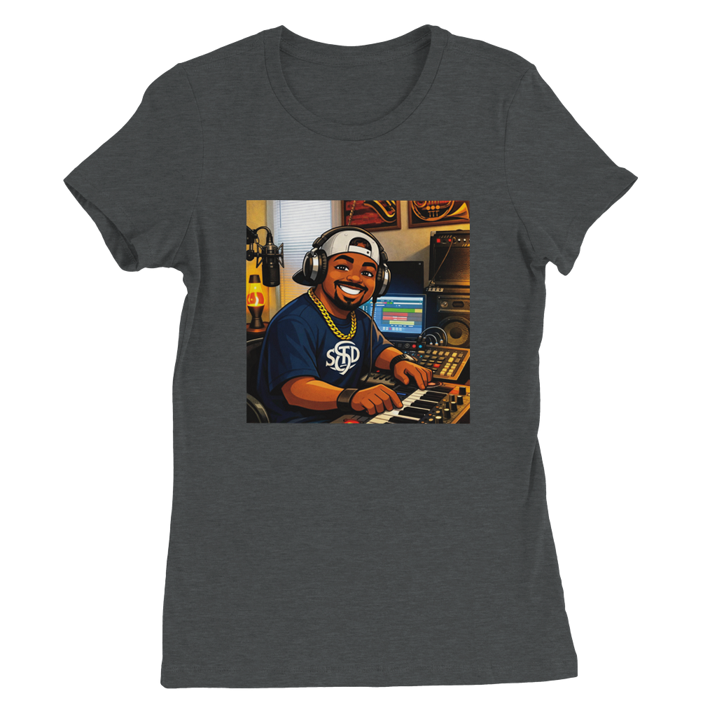 Constructed from 100% Airlume combed and ring-spun cotton, with heather/blend colors incorporating polyester. Features include side seams for a slim fit, shoulder taping, fitted sleeves, and a longer body length.
