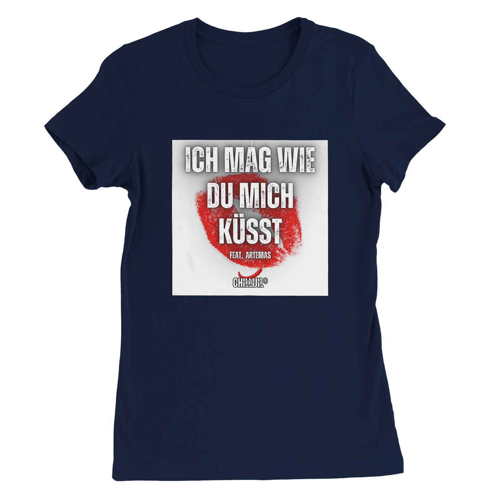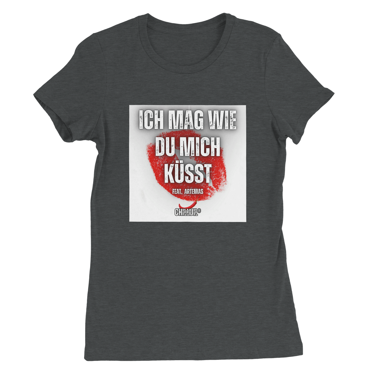 Constructed from 100% Airlume combed and ring-spun cotton, with heather/blend colors incorporating polyester. Features include side seams for a slim fit, shoulder taping, fitted sleeves, and a longer body length.