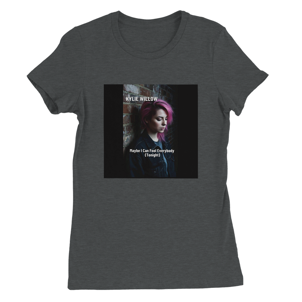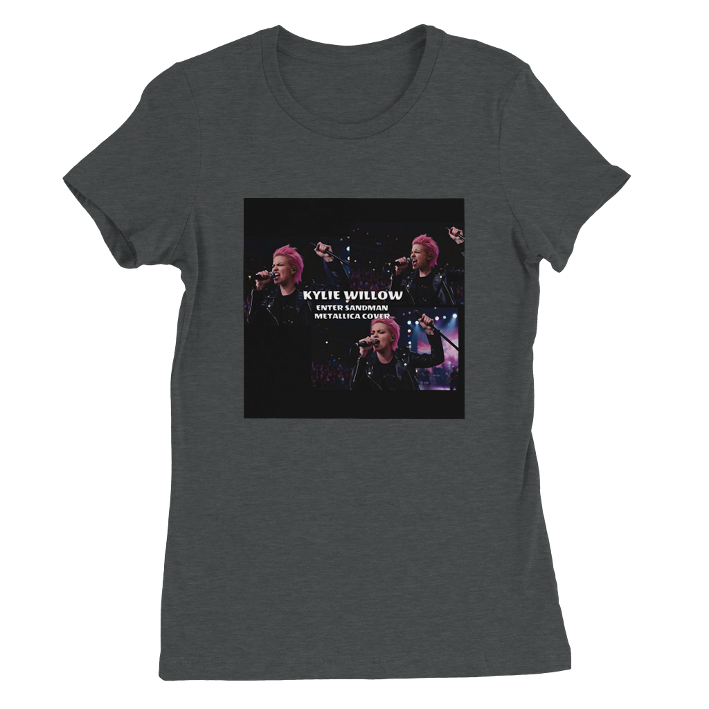 Constructed from 100% Airlume combed and ring-spun cotton, with heather/blend colors incorporating polyester. Features include side seams for a slim fit, shoulder taping, fitted sleeves, and a longer body length.