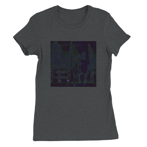 Constructed from 100% Airlume combed and ring-spun cotton, with heather/blend colors incorporating polyester. Features include side seams for a slim fit, shoulder taping, fitted sleeves, and a longer body length.