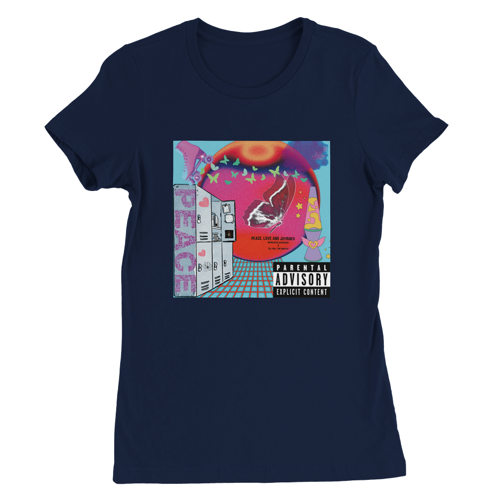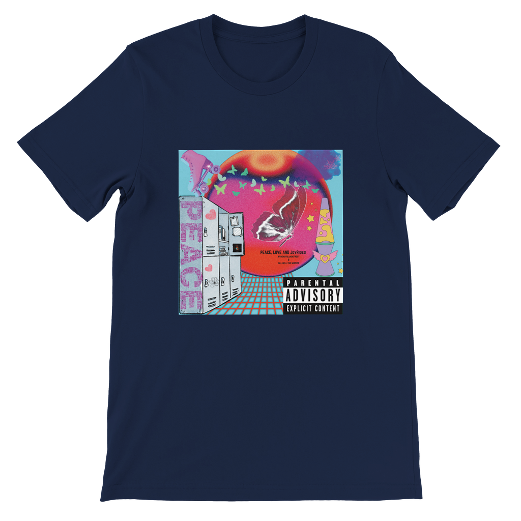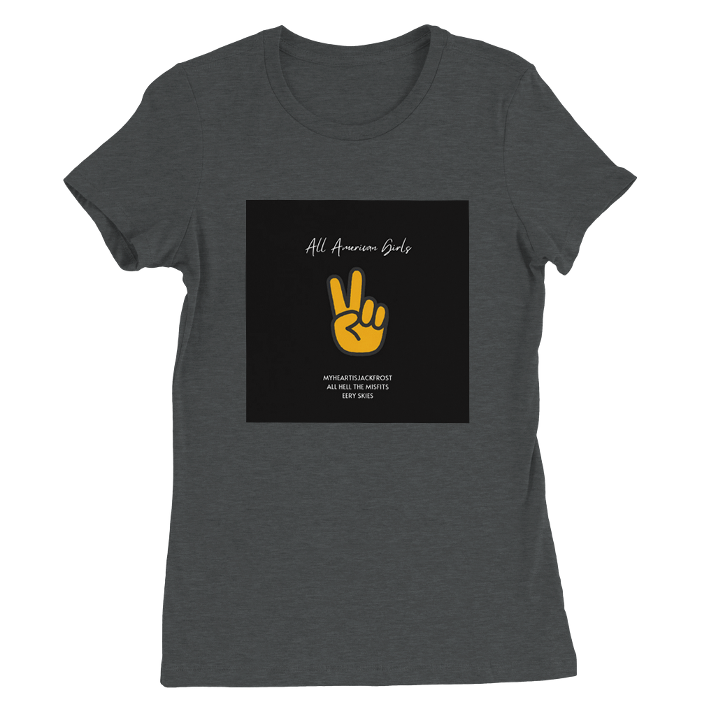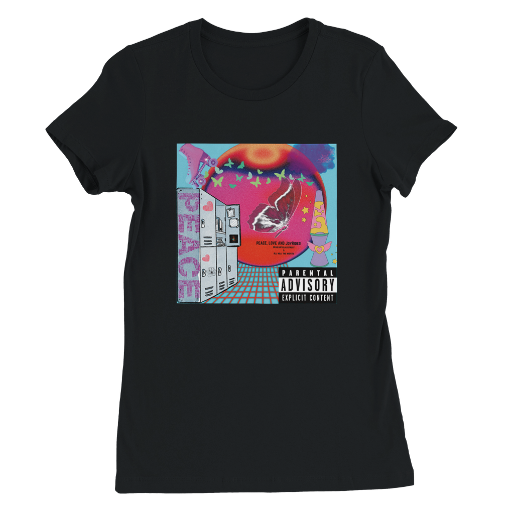 Constructed from 100% Airlume combed and ring-spun cotton, with heather/blend colors incorporating polyester. Features include side seams for a slim fit, shoulder taping, fitted sleeves, and a longer body length. Inspired by Myheartisjackfrost Harley Quinn and Joker Life