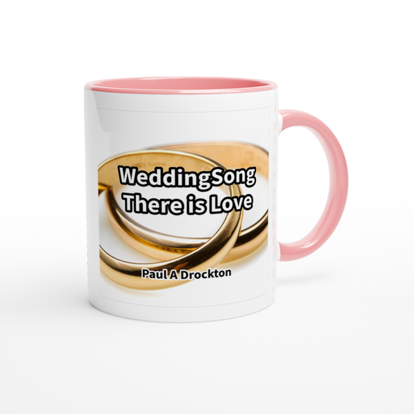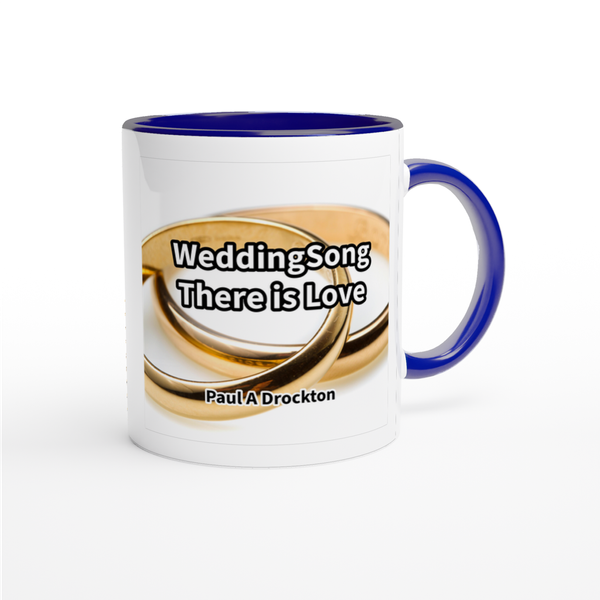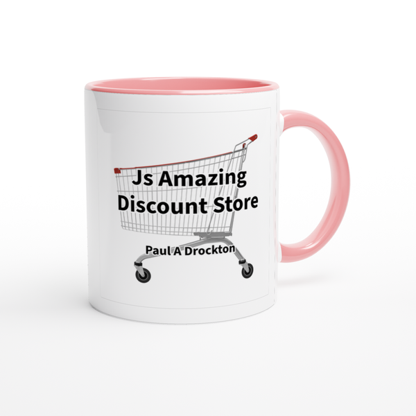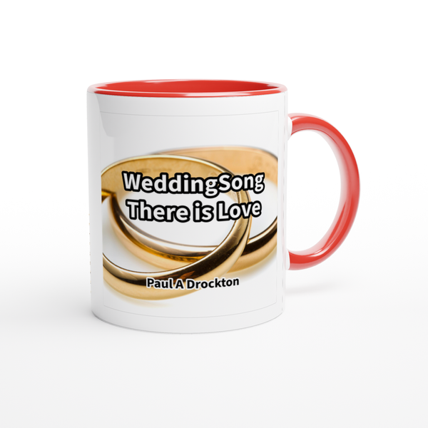 This mug is glossy white with a colored rim, inside, and handle. Microwave and dishwasher safe.
