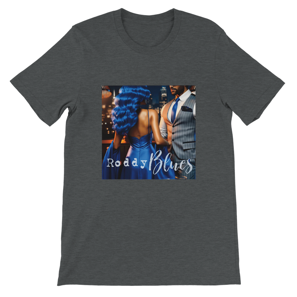 Constructed from 100% Airlume combed and ring-spun cotton, with heather/blend colors incorporating polyester. Features include side seams for a slim fit, shoulder taping, fitted sleeves, and a longer body length.