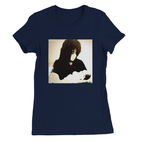 Constructed from 100% Airlume combed and ring-spun cotton, with heather/blend colors incorporating polyester. Features include side seams for a slim fit, shoulder taping, fitted sleeves, and a longer body length.