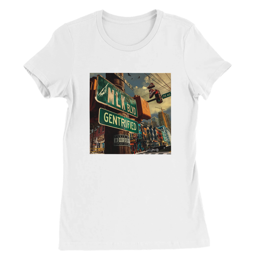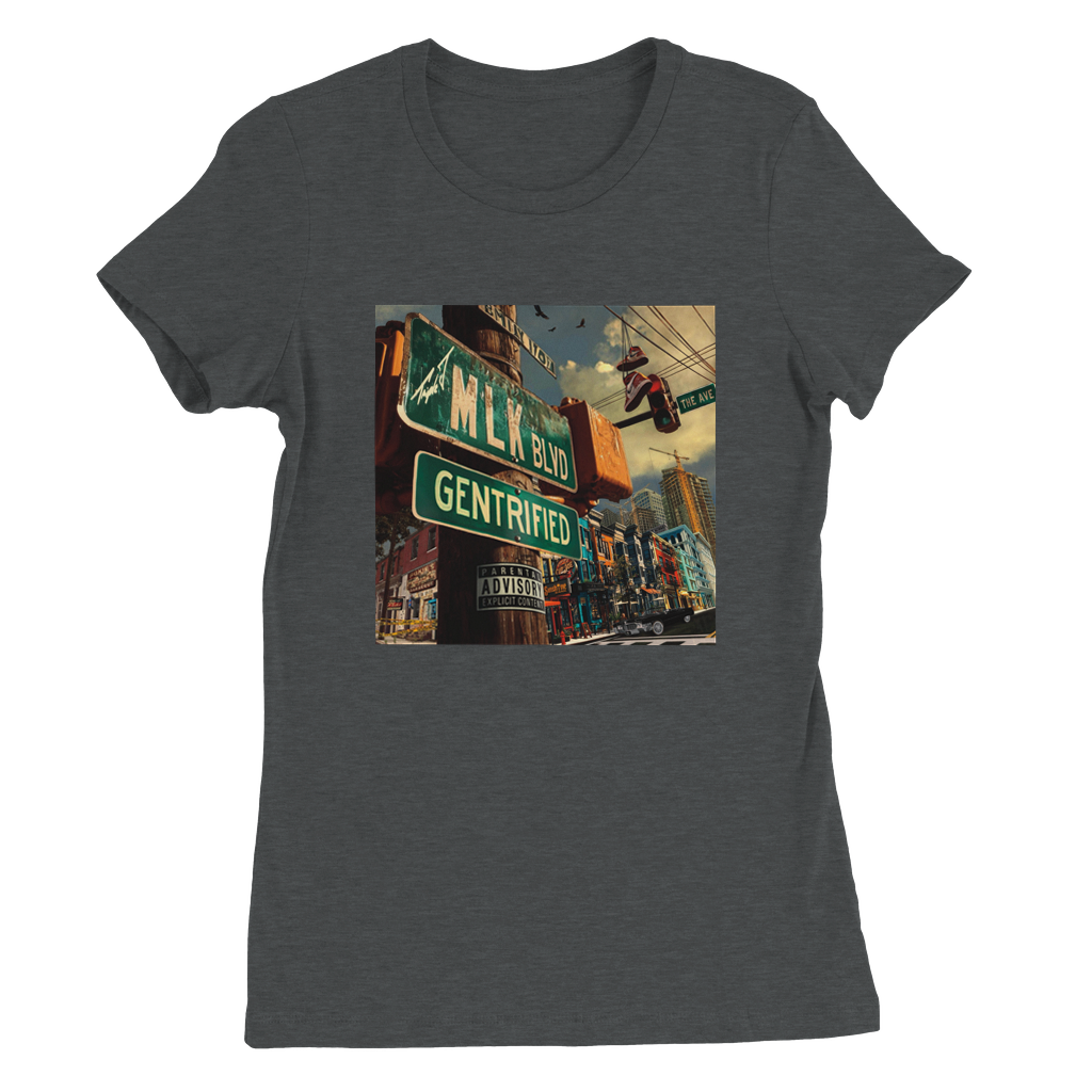 Constructed from 100% Airlume combed and ring-spun cotton, with heather/blend colors incorporating polyester. Features include side seams for a slim fit, shoulder taping, fitted sleeves, and a longer body length.